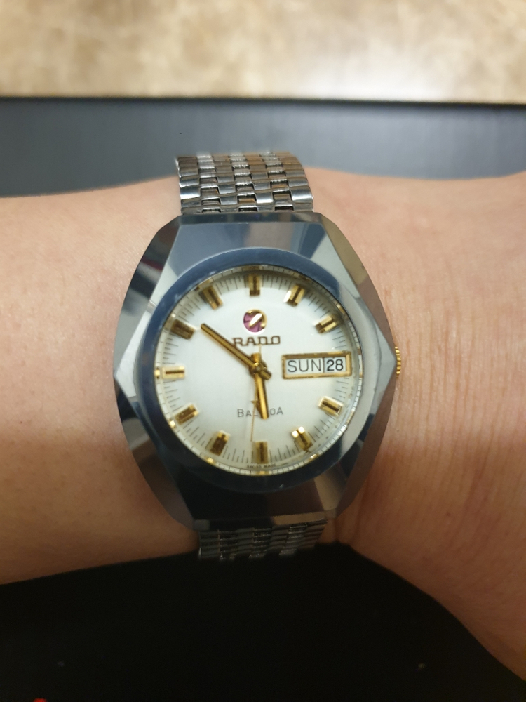 빈티지 라도 발보아 텅스텐 베젤 오토메틱시계입니다 외관은 사진 상 확인하시구요 유리 교체한거 빼곤 올 제치입니다 라도 다이아스타 모델하고 유사한 모델인데 빈티지 라도 고가 상위라인입니다 무브 점검받아 오토메틱 컨디션 괜찮습니다 줄길이 17.5~18정도 가능할거같습니다 사이즈는 가로x세로 35x39입니다 사이즈적당해서 남녀공용으로 착용하셔도 괜찮습니다 시계단품이며 일반시계케이스에 넣어서 보내드립니다 대구직거래 환영 중고 특성상 제품하자 외 변심으로 인한 교환 환불 안됩니다