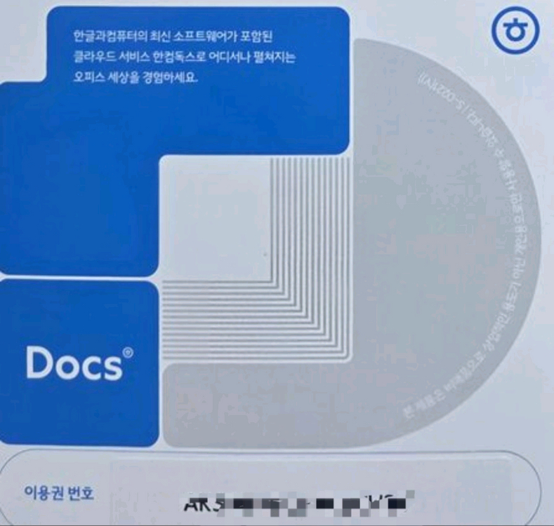 공1공 팔0육9 삼52구 문자로 연락주시면 더 빠릅니다 한컴독스 (구 한컴스페이스) 웹하드 클라우드 1년이용권 * 홈페이지 구입시 1년에 49,000원 제품번호와 등록방법을 사진캡처로 전송합니다. * 맥OS에서 한글 사용 가능 * 여러장 등록 후 이어서 사용 가능 * 연락주세요 - 10기가 용량제공/일 트래픽 50GB/업로드 용랑제한 없음 - 설치없이 웹과 모바일을 통해 어디서든 문서편집 가능 - PC 5대 설치 가능 - PC/모바일/윈도우/맥/안드로이드/iOS에서 한컴오피스 패키지(워드,한글,엑셀,파포) 설치&사용가능! (단, 맥은 한글만 가능!)