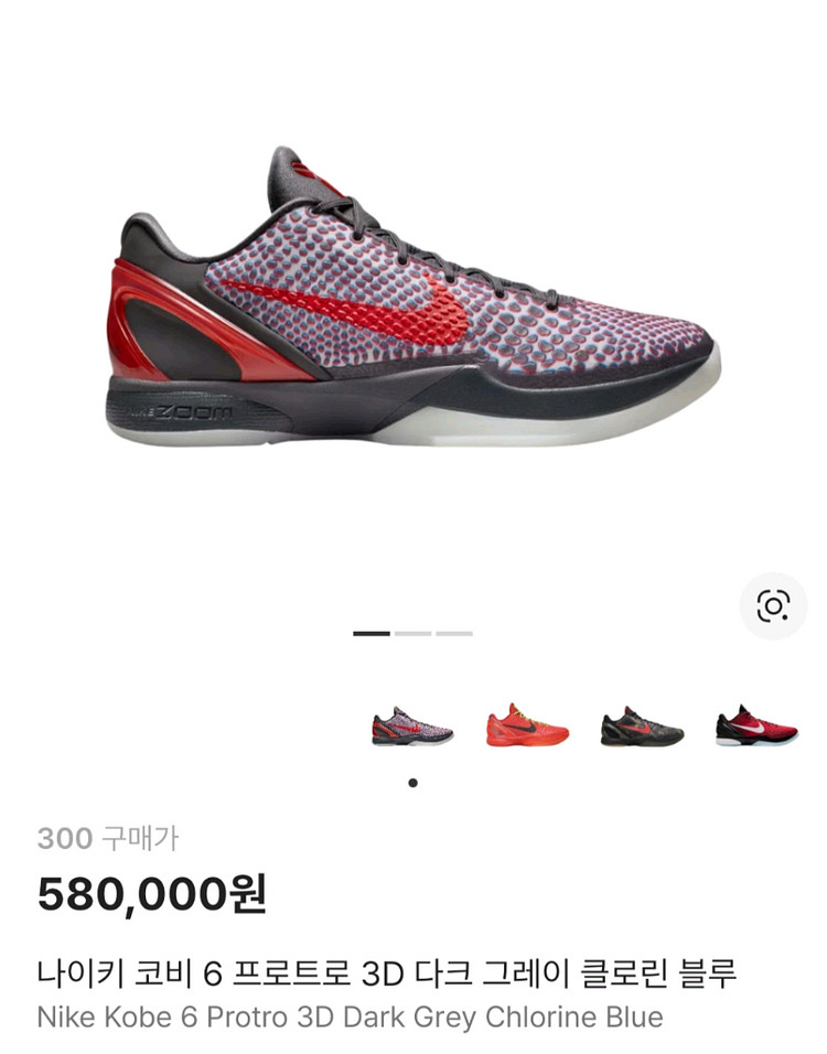 300) 나이키 코비 6 프로트로 3D 다크 그레이 클로린 블루 미개봉 새제품 300 - ㅍㅇ 310 - 359,000 서울 직거래 / 택배 4000 네고 x