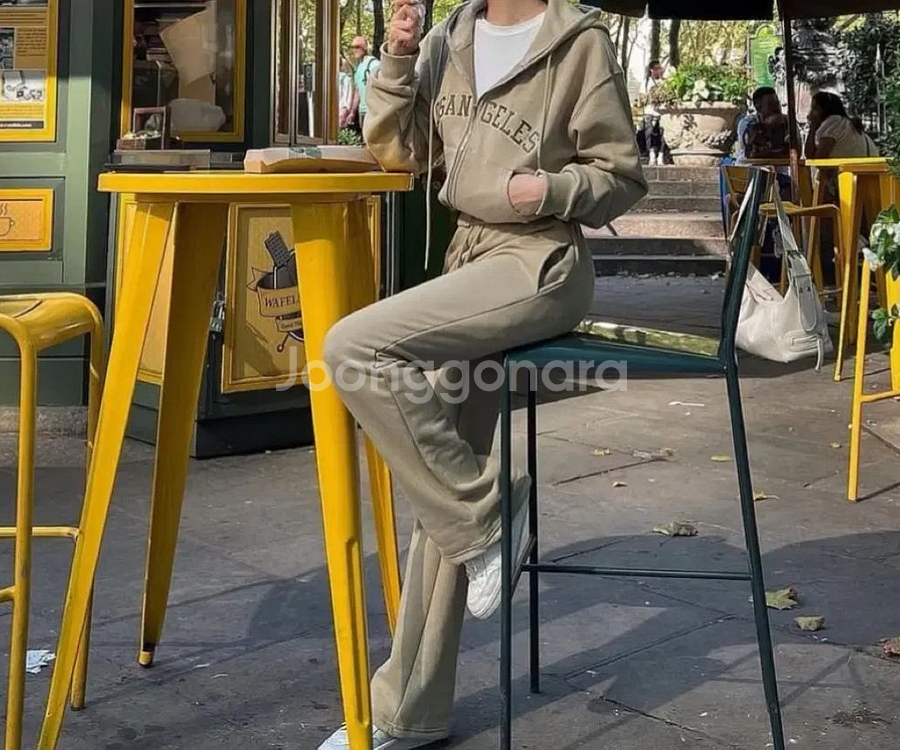 리브어리 자체제작 LA 로스엔젤레스 트레이닝 세트입니다. 후드 집업에 트레이닝 바지 조합으로 편하게 입기 좋습니다. 전체적으로 베이지 톤이라서 어디든 매치하기 좋습니다. (상하의 세트 판매 상품 입니다.) 사이즈 실측 (단위: cm) - 후드집업 어깨부터 소매까지 자연스럽게 떨어지는 루즈핏 디자인입 니다. 어깨: 62 / 가슴: 60 / 암홀: 26 / 소매길이: 53 소매단면: 10 / 밑단: 48 /총장: 51 (크롭 스타일) - 와이드 팬츠 허리 밴딩이 포함된 롱 와이드 핏입니다. 허리: 31(밴딩/최대 약 45)/ 힙: 49 / 허벅지: 30 밑위: 33 / 밑단: 26 / 총장: 102~103 ✔️사이즈 측정 방법/사람에 따라 1~3cm 정도 오차가 있을 수 있습니다.