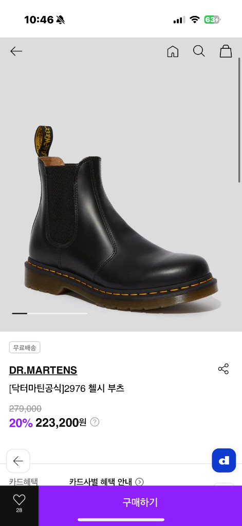 닥터마틴 2976 첼시 부츠 블랙 색상입니다 한번도 땅을 밟지 않은 새상품입니다 사이즈는 UK6, US7, EU39입니다 한국사이즈 250 or 255 입니다 너무예쁘게 코디가능해요 - 닥터마틴 특유의 디자인이 돋보입니다 - 내구성이 좋아서 오래 신을 수 있어요 - 편안한 착화감을 제공합니다