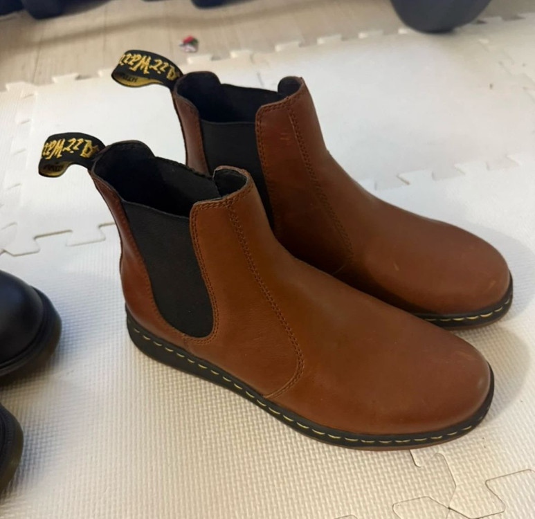 닥터마틴 2976 첼시 부츠 브라운 색상입니다 사이즈는 250mm입니다 천연 가죽으로 제작되어 내구성이 뛰어나고 오래 신을 수 있어요 특유의 유연한 착화감으로 발이 편안합니다 밑창에 약간의 사용감이 있지만 전체적으로 상태는 괜찮습니다(사진 참고해주세요) 기본가격 23만원짜리예요 새것입니다
