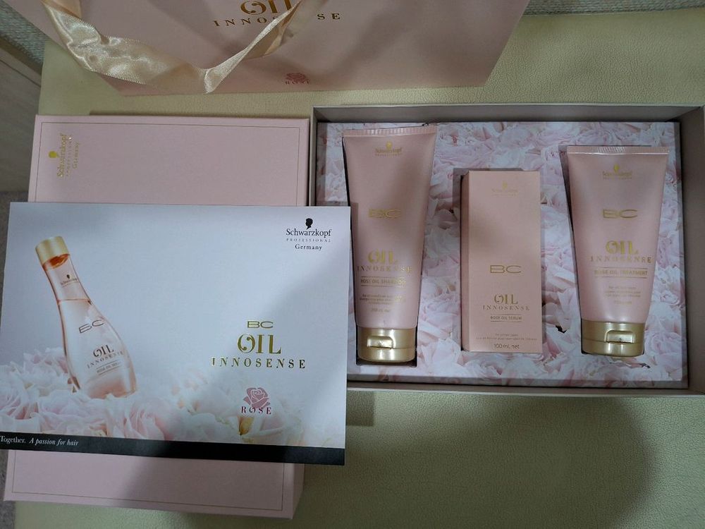 Schwarzkopf BC Oil Innosense Rose Oil 3종 세트입니다 - 로즈 오일 샴푸 200ml - 로즈 오일 트리트먼트 150g - 로즈 오일 세럼 100ml 신선한 로즈 오일이 모발에 윤기와 활력을 선사합니다 새제품