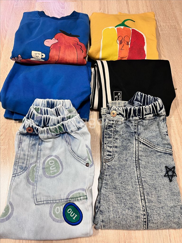 편하게 등원용으로 입히세요 전체 사이즈 L사이즈이구 제가 보이던 얼룩은 사진 찍었어요 검정색 바지는 속기모(두껍지않아요) 이 팬츠는 제가 너무 좋아해서 늘 사이즈업해서 입힐정도로 여기저기 잘 어울리고 입으면 너무 예뻐요 아이가 입었던 옷이라 얼룩이 보이는건 사진찍었어요 아이폰이라 색감이 쨍하게 나오긴했는데 파란색 노란색은 좀 더 톤 다운 색입니다 중고이니 예민하신분은 패스해주세요 택배4000원 추가입니다