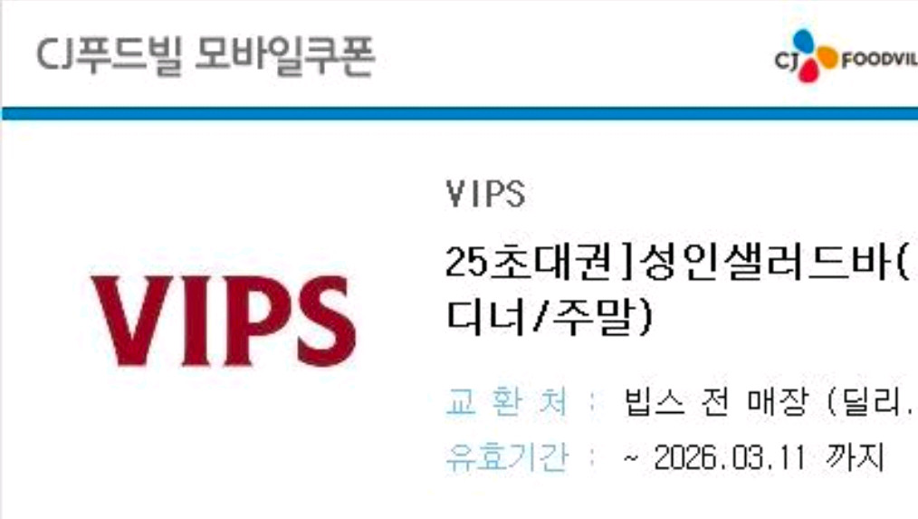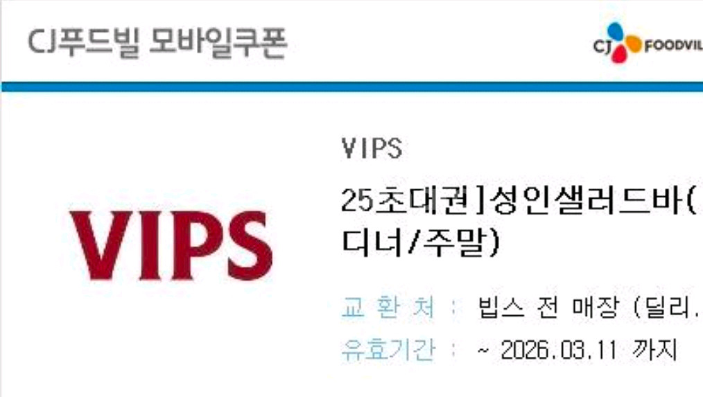 빕스 성인 샐러드바 모바일상품권 1인 식사권 ~260311