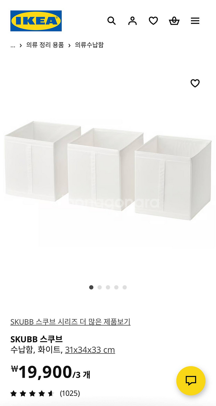 수납함 1개 + 신발함 5개 가격입니다. 문의 없으시면 바로 안전결제해주시면 됩니다! [이케아 SKUBB 스쿠브 수납함 1개 (31x34x33 cm)] 양말, 운동복 혹은 스웨터 보관용 등으로 옷장을 깔끔하게 정리하는 데 유용합니다. 손잡이가 있어서 쉽게 꺼낼 수 있습니다. 역시 납작하게 접어 보관할 수 있습니다. 제품 번호 101.863.90 소재 - 패브릭: 폴리에스테르 100%(최소 90% 재활용) - 인서트: 폴리프로필렌 플라스틱 크기: 폭 31 cm x 깊이 34 cm x 높이 33 cm [이케아 SKUBB 스쿠브 신발함 5개 (22x34x16 cm)] 옷장의 잡화를 보관하는데 사용했습니다. 메시 소재를 사용하여 통기성이 좋고 안에 물건을 확인하기 쉽습니다. 벨크로 접착방식으로 쉽게 열고 닫을 수 있습니다. 납작하게 접어 보관할 수 있습니다. 제품 번호: 801.863.96 소재 - 패브릭: 폴리에스테르 100%(최소 90% 재활용) - 인서트: 폴리프로필렌 플라스틱 크기: 폭 22 cm x 깊이 34 cm x 높이 16 cm
