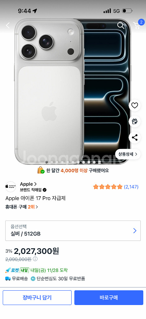 아이폰 17프로 미개봉 256자급제 색상선택 거래내역 확인가능 2월23 발송 다른 용량 문의 한대만 팝니다