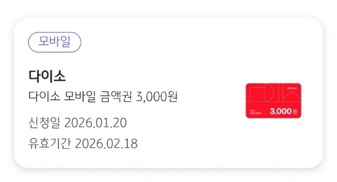 다이소 모바일 금액권 3000원 기프티콘 쿠폰 1000원