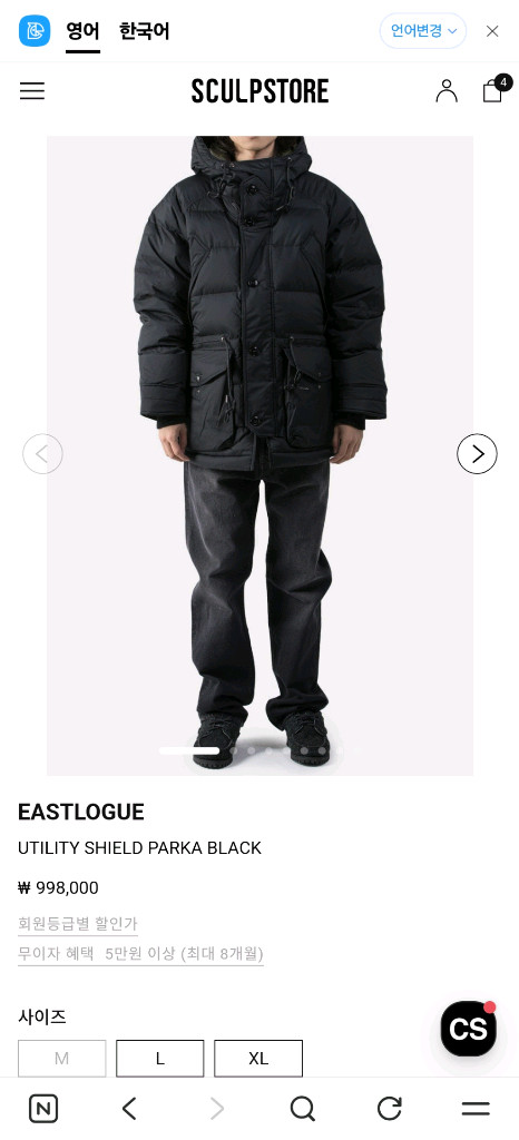 (새상품)이스트로그 유틸리티 쉴드 파카 블랙 L