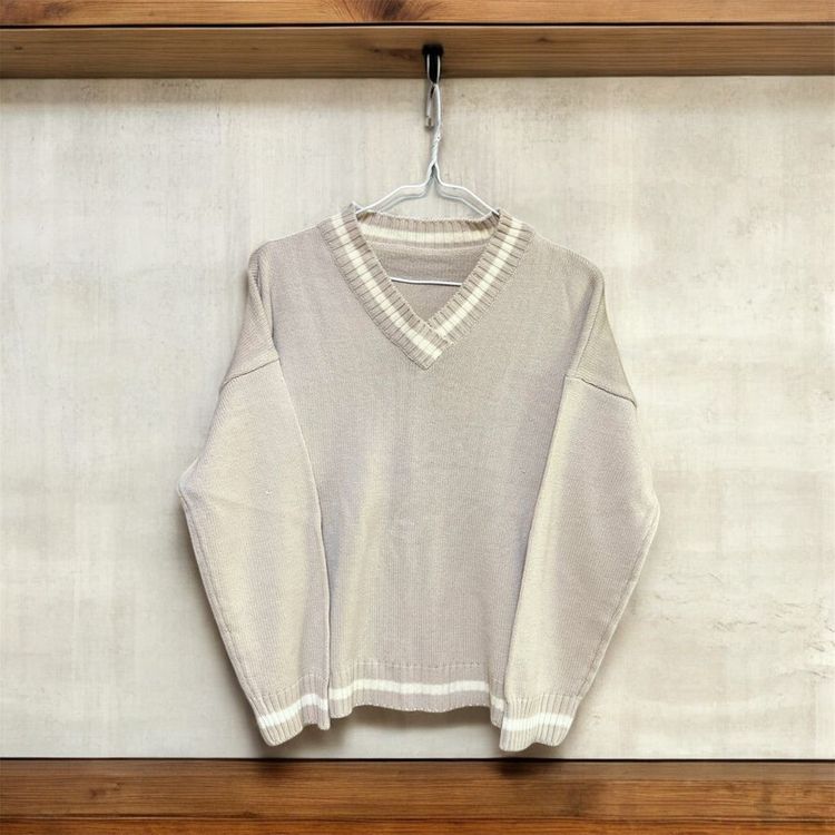 부드러운 아이보리 베이지색 V넥 니트 판매해요 얼굴 톤 환해 보이는 색감이라 어디에나 코디하기 쉬워요! 두껍지 않은 니트 소재라 간절기·실내용으로 딱 좋고, V넥 디자인이라 목선도 예쁘게 살아나요 🙂 V넥 배색은 크림색입니다 사이즈 M, 기본핏 총기장: 60cm 큰 오염이나 늘어짐 없이 상태 좋아요! 편하게 문의 주세요!