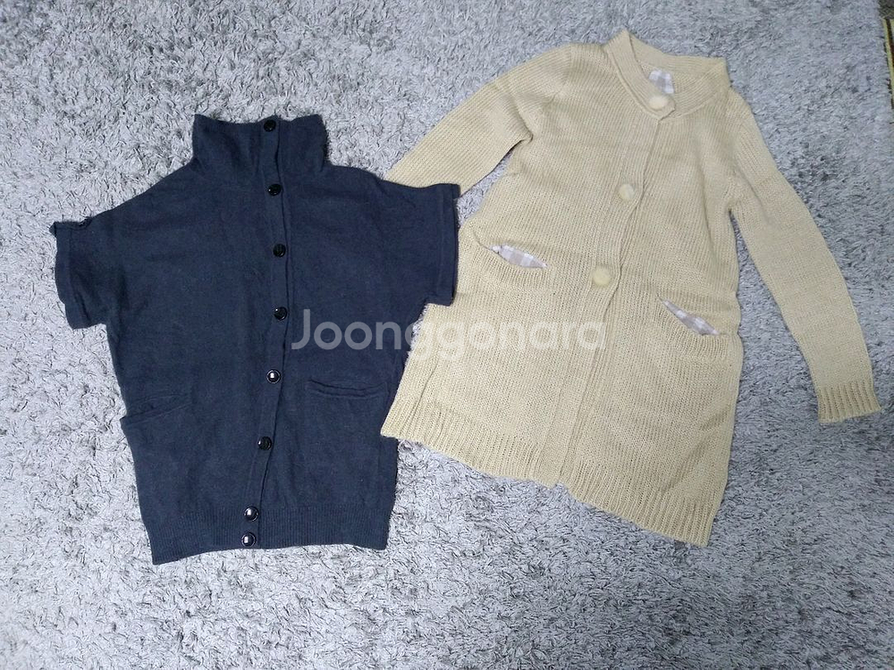 왼쪽은 앙고라 다크차콜색 반팔 가디건이고, 오른쪽은 베이지색 토끼털단추 가디건이예요. 귀여운스타일이예요. 둘다 거의새것입니다. 자세한 사이즈는 사진으로 확인하세요. 반값택배:무료 일반택배:2천원추가