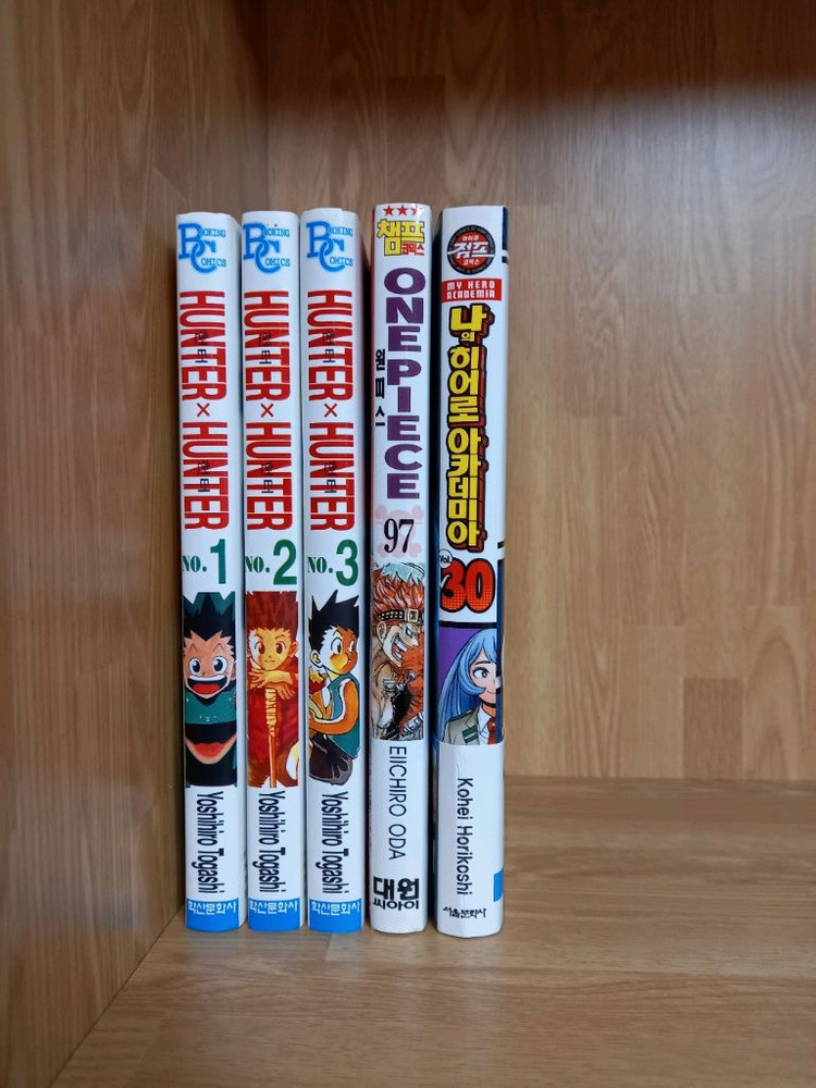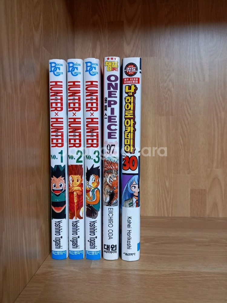 개인정보(거래정보)를 주고받는 행위는 사기에 노출될 수 있으므로 즉시 중고나라로 신고해 주세요헌터X헌터 1, 2, 3권, 원피스 97권, 나의 히어로 아카데미아 30권 만화책 5권세트 -만원. 책상태는 나쁘지않습니다 바로거래 가능하신분만 채팅주세요 입금순-