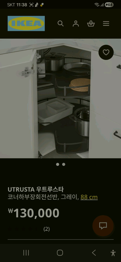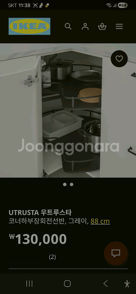 개인정보(거래정보)를 주고받는 행위는 사기에 노출될 수 있으므로 즉시 중고나라로 신고해 주세요주방에 설치하는 회전식 수납선반이에요. 주방 공간 활용도를 높여주는 실용적인 제품으로 상태 양호합니다. 이케아 우르투스타 회전식 코너 하부장