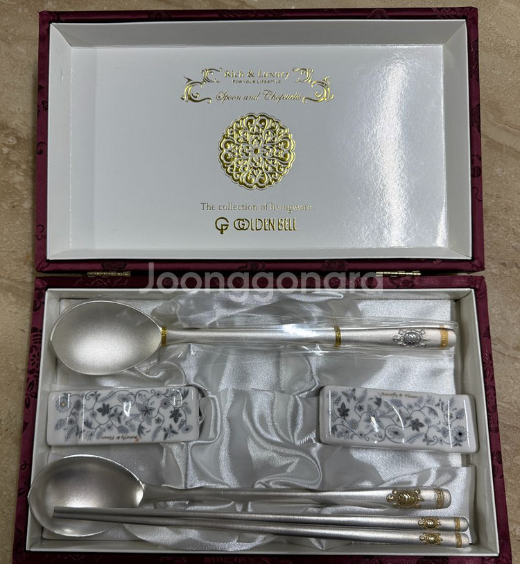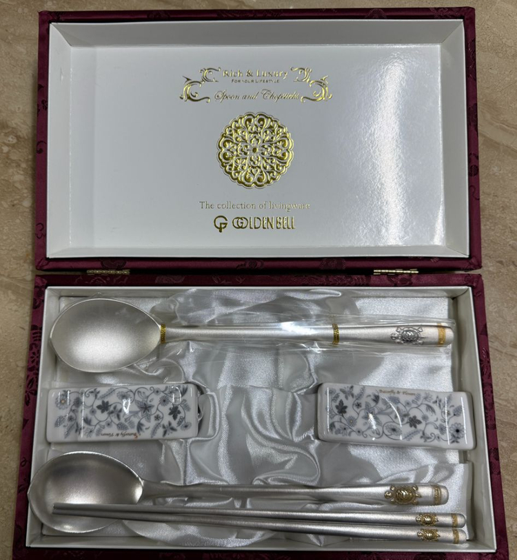 미사용 골든벨 금부거북 방자 부부 은수저 세트 60돈 99% 입니다. 시중에 판매되는 은수저 세트 중 최고가 상품으로 수저에 노란 부분은 모두 순금으로 칠해져 있습니다. 놓았습니다. 한벌은 비닐 벗겨진 상태로 오랫동안 방치해 뒀더니 변색돼서 세척해놓은 상태 입니다. 초음파 세척기에 세척하면 완전깨끗해 질 듯 합니다. 현재 230만원에 판매중인 상품입니다. 고가품 귀금속인 관계로 택배거래 불가품 입니다.
