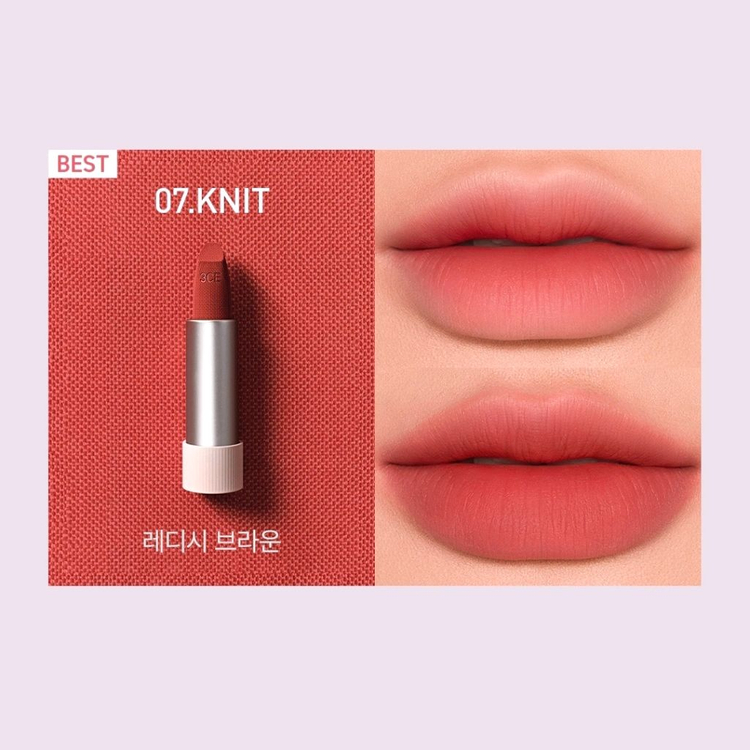 3CE쓰리씨이 매트 립스틱 07 니트 베스트 색상이에요. 28.03.04까지 미사용 새제품 🟢배송비안내 반택 GS1800/CU/세븐 일반택배 3200 부피에 따라 우편,준등기 가능