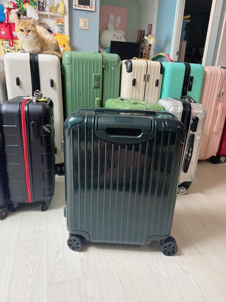 리모와 에센셜 캐빈 캐리어 판매합니다 짙은 녹색 색상입니다 - 튼튼하고 가벼운 것이 특징입니다 - 여행 시 유용하게 사용할 수 있습니다