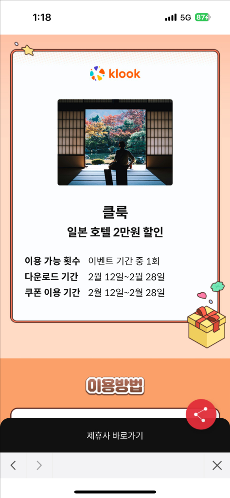 클룩 일본 숙소 2만원 할인 천원