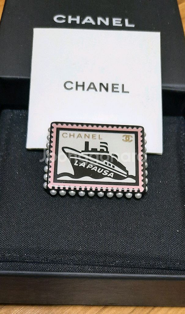 CHANEL LAPAUSA BROOCHES ₩180만에 구입 소장중 샤넬 부로치 참스 AB263 [ 수지갸진주 ] White Pearl 명칭만 브로치일뿐 가방장식 또는 목걸이 펜던트, 모자에 장식 마지막 의류에 부착하여 더욱 빛을 발할수 있는!!! 실용성 최강 아이템 브롯치 입니다 절대 구할수 없는 레어 아이템 포스 최강입니다 시중에서 찾아도 없읍니다 ((절품)) 케이스 있음 2018 봄 컬렉션의 매력적인 샤넬 루사이트 및 인조 진주 핀. 핀의 하단 레이어는 검은색 루사이트이며 측면에는 인조 진주가 세팅되어 있습니다. 상단은 루사이트입니다. 그 사이에는 프랑스어로 "The Break" 또는 "Holiday"를 의미하는 "La Pausa"가 적힌 유람선의 흑백 이미지가 끼어 있습니다. 이미지에는 핑크색 테두리가 있으며 골드 톤 메탈 단어 Chanel과 상징적인 연동 CC 로고가 삽입되어 있습니다. 골드 핀 뒷면과 샤넬 타원형 시그니처 플라크가 블랙 루사이트 뒷면에 삽입되어 있습니다. 샤넬이 새겨진 시그니처 명판, 저작권 및 등록 스탬프, 왼쪽에 2018년을 위한 18개, 원 안에 CC가 맞물려 있고 P는 Printemps(봄) 및 Made in France를 의미합니다. 핀의 크기는 1.6인치, 높이 1.38인치, 높이 0.5인치입니다. 우체국탁배 7000원 반품불가 직송탁배