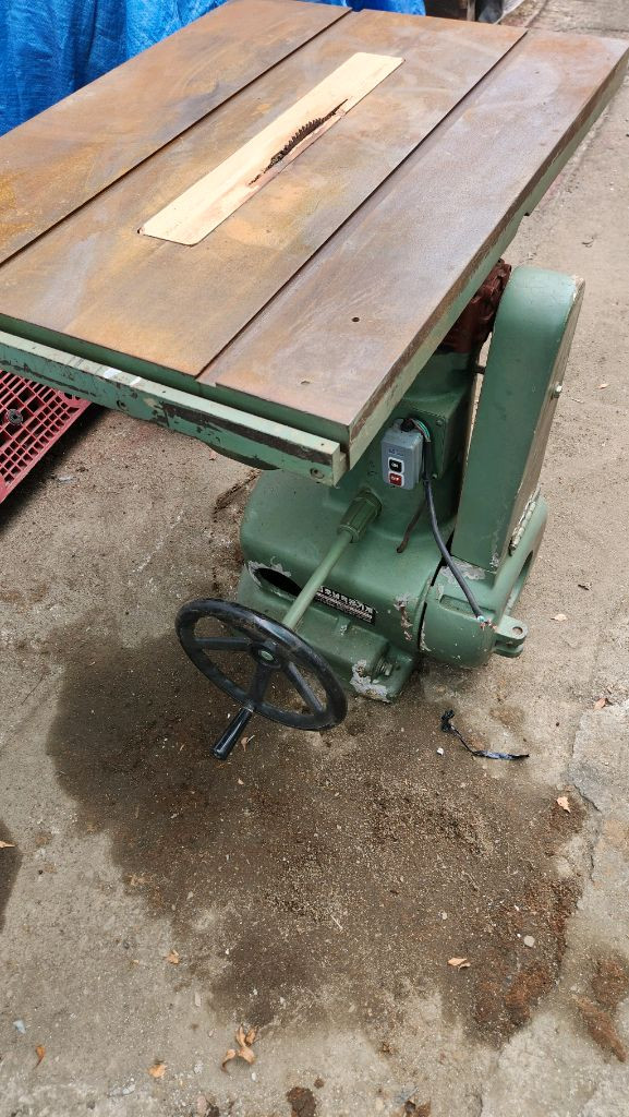 목공용 톱다이(마루노꼬)입니다 모타는 3상 380볼트 3.7kw 5마력입니다 상판크기 94x70센티 입니다 작동이상없습니다 80만원 (배송비별도) 입니다 경기도 광주