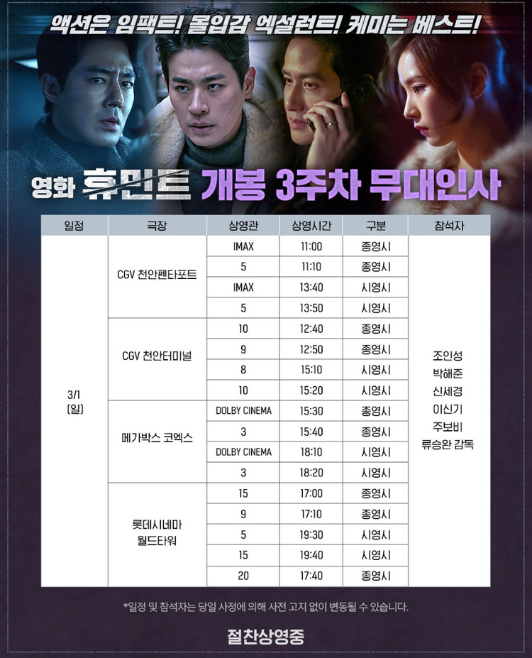 휴민트 무대인사 롯데시네마 월드타워 17시00분 B통로 (우) 25,000 휴민트 무대인사 롯데시네마 월드타워 17시10분 D통로 (우) 25,000 휴민트 무대인사 롯데시네마 월드타워 17시40분 D통로 (좌) 25,000 휴민트 무대인사 롯데시네마 월드타워 17시40분 C통로 (우) 25,000 휴민트 무대인사 롯데시네마 월드타워 17시40분 D통로 (우) 25,000 휴민트 무대인사 롯데시네마 월드타워 19시30분 C통로 (우) 판완 휴민트 무대인사 롯데시네마 월드타워 19시40분 C통로 (우) 25,000 휴민트 무대인사 롯데시네마 월드타워 19시40분 C통로 (좌) 25,000 휴민트 무대인사 롯데시네마 월드타워 19시40분 D통로 (우) 25,000 휴민트 무대인사 롯데시네마 월드타워 19시40분 D통로 (좌