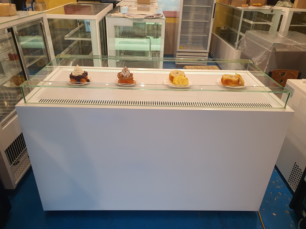카페 오픈 샌드위치 평대 냉장 쇼케이스 제과 디저트 음료 야채 다용도 상부오픈 하부 냉장저장 주문제작 가로1600 폭730 높이102O 백경유리,LED조명.2콤프레샤.자연 증발배수 2년사용 급처분 판매 160만원 인천 010-4905-4989 전국 배송가능