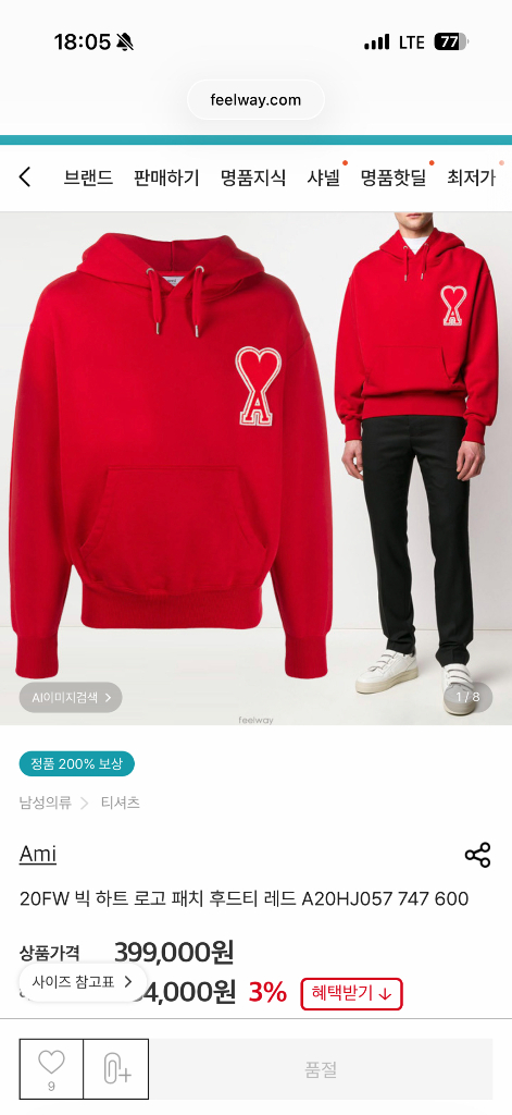 아미(AMI) 20FW 빅 하트 로고 패치 후드티 레드 색상 M사이즈 판매합니다. 브랜드: AMI (아미) 사이즈: M (실측: 어깨 58 / 가슴 58 / 소매 60 / 기장 64) 상태: A급 (매우 양호) • 상태 설명: 전체적으로 사용감 적고 상태 아주 좋습니다. 꼼꼼히 확인했는데 하자, 이염, 오염 전혀 없습니다. 시보리 늘어남도 거의 없고 로고 패치 상태도 깔끔해요. • 특징: 빅 하트 로고라 포인트 주기 정말 좋고, 레드 컬러가 촌스럽지 않고 예쁘게 잘 나왔습니다. 지금부터 입기 딱 좋은 두께감이에요. 중고 거래 특성상 환불은 어려우니 신중한 결정 부탁드립니다! 010-6사사1-영69일