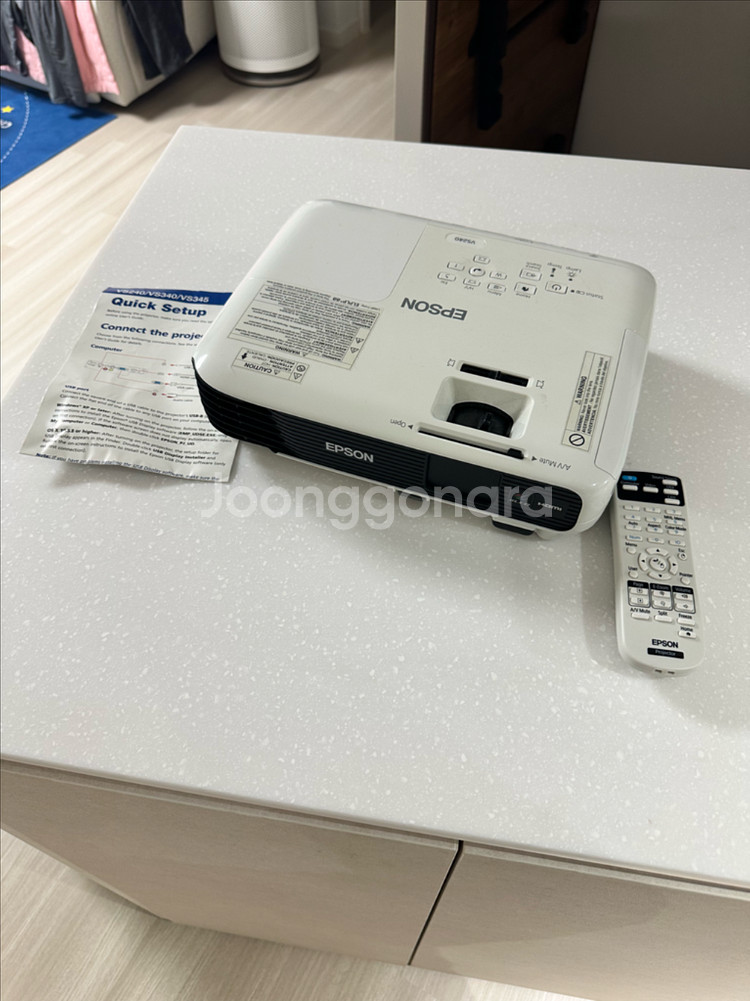 엡손 VS240 빔프로젝터입니다 3LCD 기술로 밝고 선명한 화면을 제공하며, 3000루멘의 밝기로 낮에도 또렷하게 볼 수 있습니다 상태는 사진과 같이 양호하며, 리모컨 포함입니다 집에서 영화나 게임을 즐기기에 좋은 제품입니다 110v 220돼지코로 연결