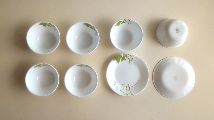 코렐 유러피안허브 소 접시 2p 공기 6p 한 두 번 사용 후 보관했던 제품이라 깨끗합니다 개별로 판매하지 않습니다 가격 - 20,000원 (우체국 운비 포함)
