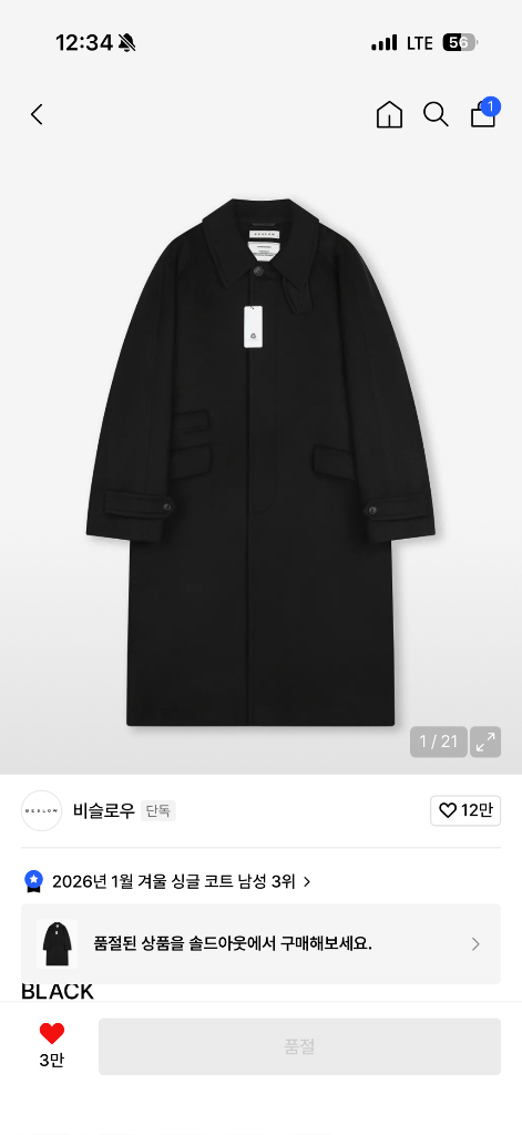 비슬로우 오버사이즈 캐시미어 발마칸코트 블랙 25FW 미착용상품 색상 블랙 사이즈 XL 무신사에서 26만원 주고 구매했습니다. 사이즈가 안맞아 싸게 팝니다.
