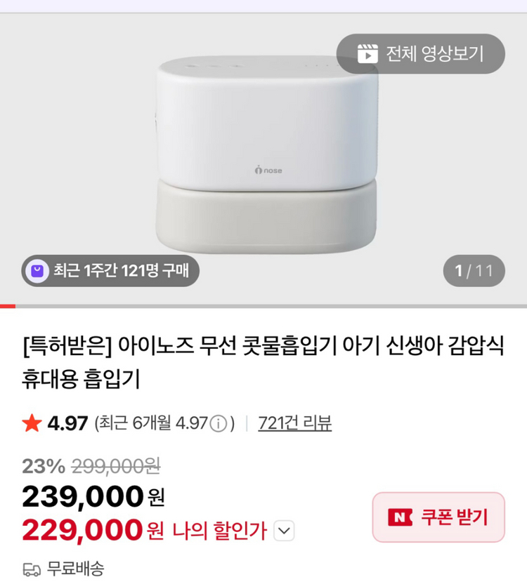 아이노즈 무선 흡입기입니다 아기, 신생아용으로 무선이라 휴대하기 좋습니다 동일한 상품 구매했는데 선물을 받아서 판매합니다 미개봉상품입니다 인터넷최저가보다 저렴하게 내놓습니다 전용가방도포함입니다 공일공 삼사오사 오육칠오