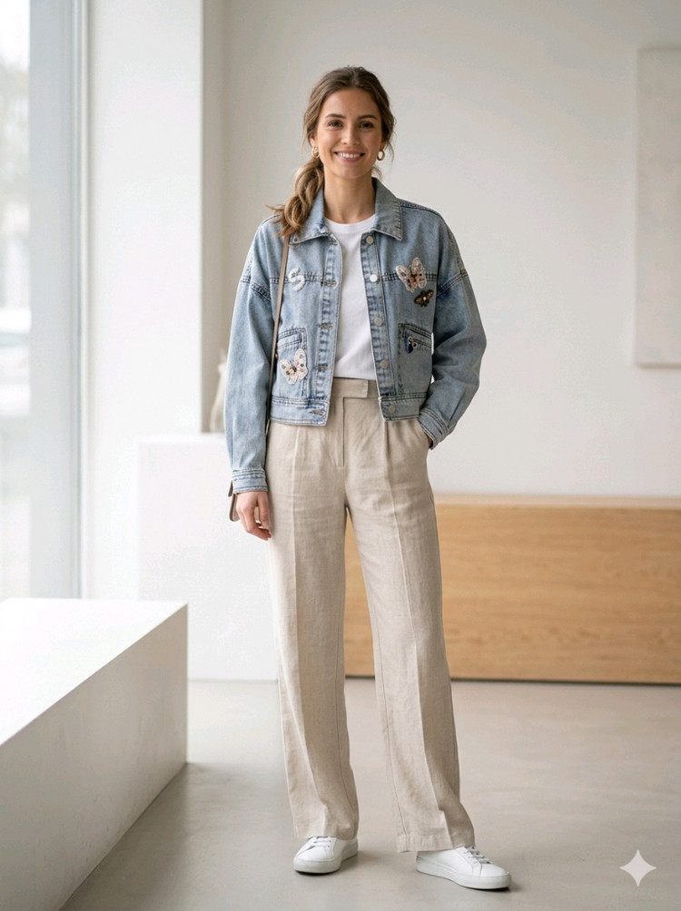 청순한 무드를 주는 연청 데님자켓이에요. 유니크하고 귀여운 와펜 디테일이 포인트 되는 디자인으로 밋밋하지 않아 봄 코디에 포인트 주기 좋은 아이템이에요. 55(FREE) 사이즈로 정55~66 초반까지 여유있게 착용 가능합니다. 청바지나 스커트등과 함께 매치했을 때 딱 다리길이 길어보이는 크롭 기장이에요 ▪︎ 품번 : S211N104A-24 ▪ 컬러 : 연청 (1COLOR) ▪ 두께감 : 간절기용 ▪︎ 사이즈(단면) : 어깨 57 / 가슴 53 소매 43 / 총장 47 ✔ 크롭 기장 ✔ 간절기 가볍게 착용 ✔ 직거래 우선 / 택배 가능 ☆ 반값 택배는 연중무휴로 연휴기간 배송 가능합니다 실물 사진 충분히 확인 후 문의 주세요 😊 📍 중고 특성상 교환·환불은 어렵습니다.