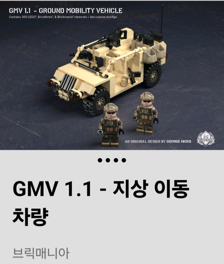 레고 밀리터리 브릭매니아 GMV 1.1 키트속 미피 2개, 브매 멀캠 시리즈 중 단연 손에 꼽을 정도로 이쁜 모델입니다. 귀하기도 하구요. 전시만 잠시 했던지라 새상품급 컨디션 입니다. 미피2개 셋트가 95,000원 (총기,베스트 2셋트는 서비스로 드립니다.) 택배시 3,500원 추가 직거래는 부산 당감동에서 가능. 01037541421 문자 또는 채팅 주세요,, ✋️✋️