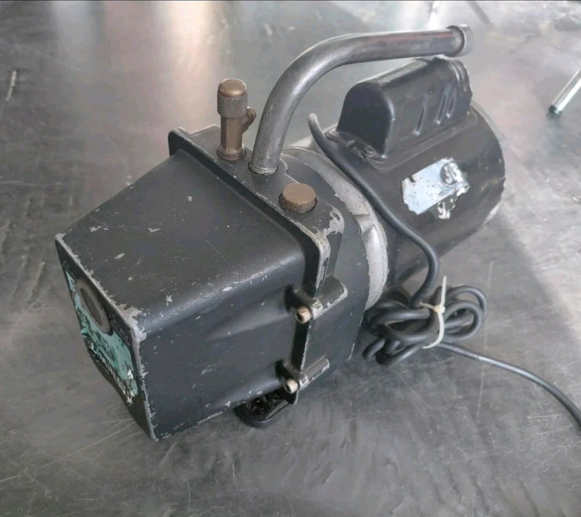 JB Eliminator 진공 펌프 판매합니다. 사용감이 있고 스티커가 손상되어 있지만, 작동에는 문제 없습니다. 전원 케이블 포함되어 있습니다. 냉매 회수 및 진공 작업에 사용되는 전문가용 장비로, 강력한 성능을 자랑합니다.