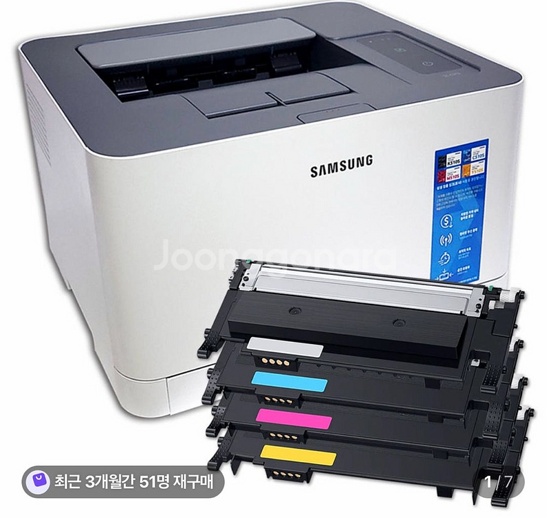 삼성 컬러 레이저 프린터 C513 모델입니다. 2025년 7월까지 사용 가능하며, 잉크 잔량은 사진에서 확인 부탁드립니다. 집에서 잠깐 사용했고 사용시 덮개 사용으로 깨끗합니다 구매시 박스 구성품 전부 그대로 있습니다 직거래만 가능합니다 거래는 부천 범박힐스테이트 4단지입니다