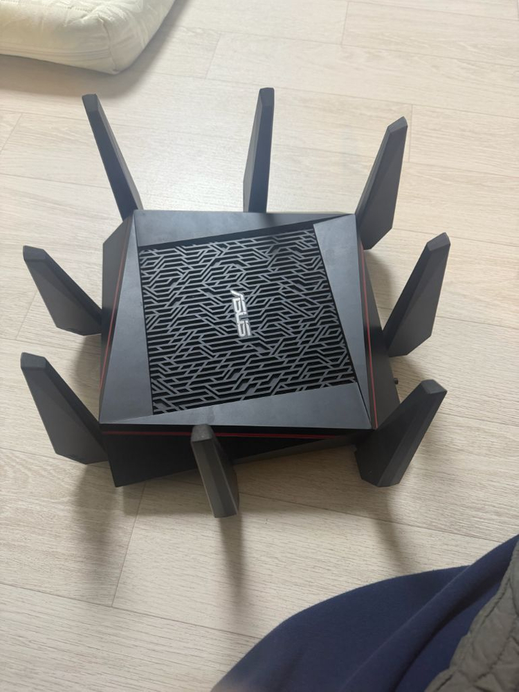 ASUS RT-AC5300 트라이 밴드 기가비트 공유기입니다 - 8개의 안테나로 넓은 커버리지를 제공합니다 - 빠른 속도와 안정적인 연결을 지원합니다 - 집 전체에서 끊김 없는 무선 경험을 제공합니다 - 여러 장치에 동시에 연결해도 성능 저하가 없습니다 전원 어댑터 포함입니다
