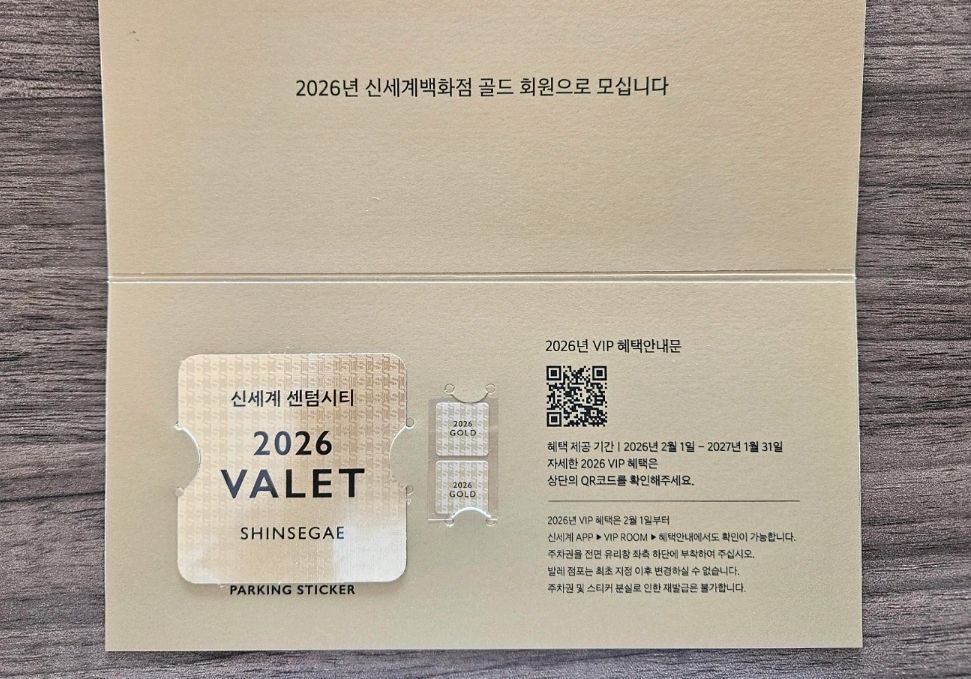 2026년 신세계vip 골드 주차스티커1장 카드스티커2장 판매합니다 주차혜택은 적용안됩니다 우체국 등기로 운포 33000원에 드립니다