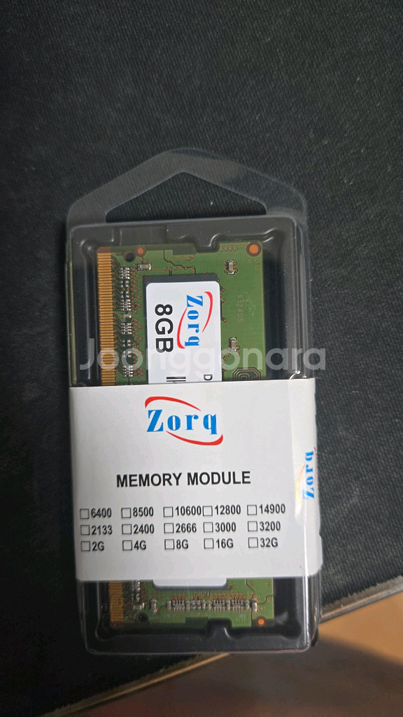 노트북용 ZORQ DDR4 8GB 메모리 입니다. 미개봉 새제품 포장지만 쪼금 찢어진 상태