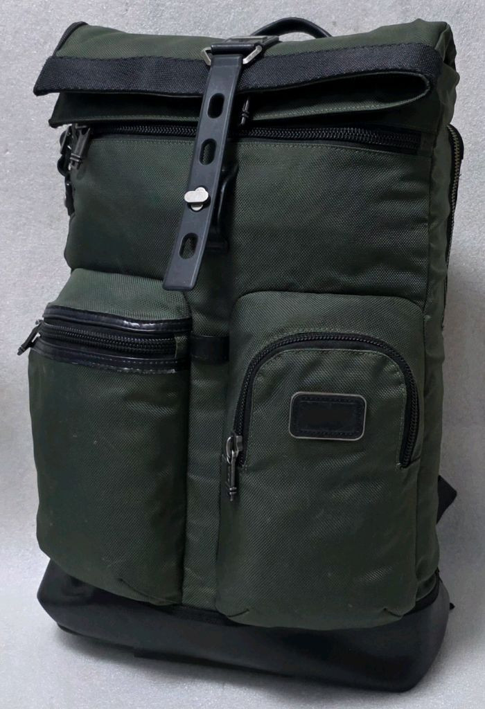 투미 TUMI 정품입니다 수납공간 많고 편안한 백팩입니다 모델명은 Alpha Bravo Lukr Roll-Top 입니다 돌돌 말아서 사용하는 roll top 방식입니다 가로35 세로49 폭15 입니다 투미 백팩중에 큰 사이즈입니다 측면에 지퍼가 ㄴ자로 열려서 수납도 편리합니다 튼튼한 가죽 손잡이가 있어서 좋습니다 여행이나 연수 모임등 1박가능 합니다 전면에 세군데 수납 공간이 있습니다 등판에 노트북수납 전용 공간이 별도로 있습니다 어깨맬빵 통통하고 두툼해서 어깨가 편안합니다 이부분에 신경을 많이 쓰는 성격이라 알려드립니다 사용감 적고 상태는 괜찮습니다 앞부분 보조 공간에 살짝 사용감이 있습니다 돌출이 되어서 그렇고 몇 번 사용하면 생기는 정도입니다 하자는 없고 깨끗하게 보관했습니다