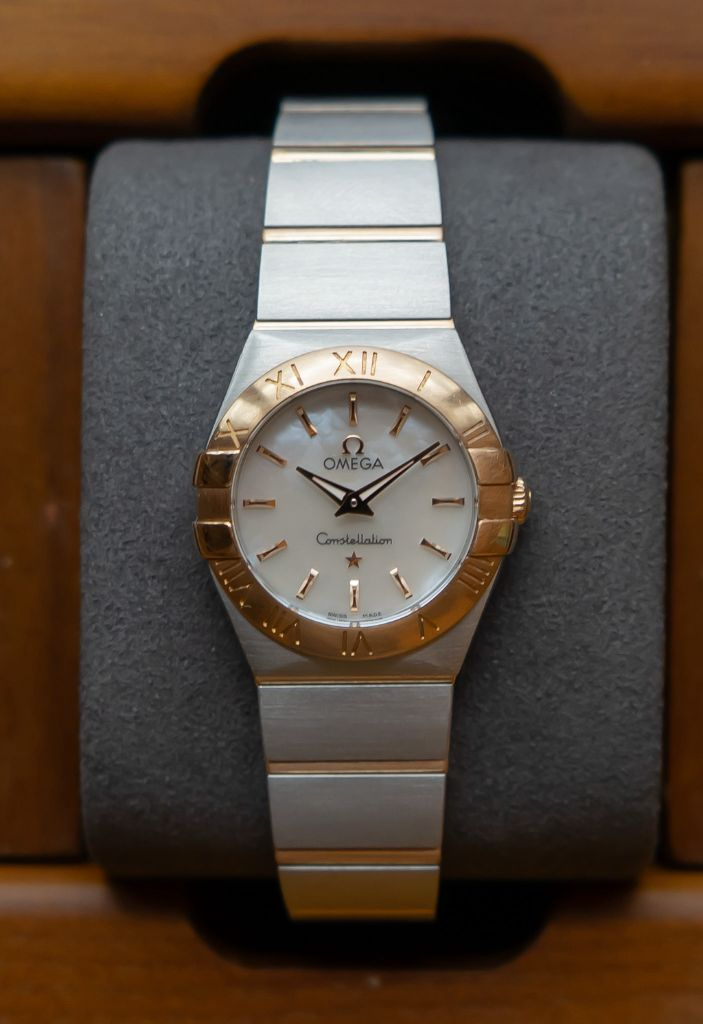 🔹 • 모델명: OMEGA Constellation • 사이즈: 25mm • 무브먼트: 쿼츠 (Quartz) • 다이얼: 화이트 자개(MOP) 다이얼 • 베젤: 세드나골드 베젤 • 케이스/브레이슬릿: 스틸 & 세드나골드 콤비 • 연식: 2018년 • 구성품: 시계 + 케이스 + 시계 설명서 + 감정서 • 상태: 작동 정상 / 전체 컨디션 양호 ⸻ ✅ 시계 설명 Omega의 대표 여성 라인 컨스틸레이션 세드나골드 콤비 모델입니다. 은은하게 빛나는 자개 다이얼 위에 로즈톤 세드나골드 베젤과 인덱스가 조화를 이루며 고급스럽고 세련된 분위기를 연출합니다. 컨스틸레이션 특유의 클로(griffes) 디자인과 로마 숫자 베젤이 클래식하면서도 브랜드 아이덴티티를 분명하게 보여주는 모델입니다. 25mm 사이즈로 손목이 가는 분들께 잘 어울리며 데일리 착용은 물론 드레스 워치로도 활용도 높은 제품입니다. ⸻ 💡 포인트 • 세드나골드 콤비 모델 • 고급스러운 자개 다이얼 • 2018년식 비교적 최근 연식 • 여성 인기 사이즈 25mm ⸻ 📍 거래조건 • 경기도 구리 직거래 • 택배 / 퀵거래 가능 • 네고 문의 받지 않습니다