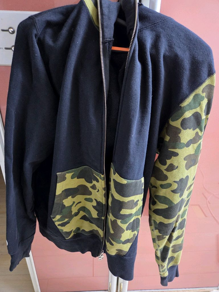 베이프 카모 후드입니다 상태는 보시는것과 같습니다 목택 오염있는데 세탁소에 맡기시면 됩니다. 감안한 가격입니다