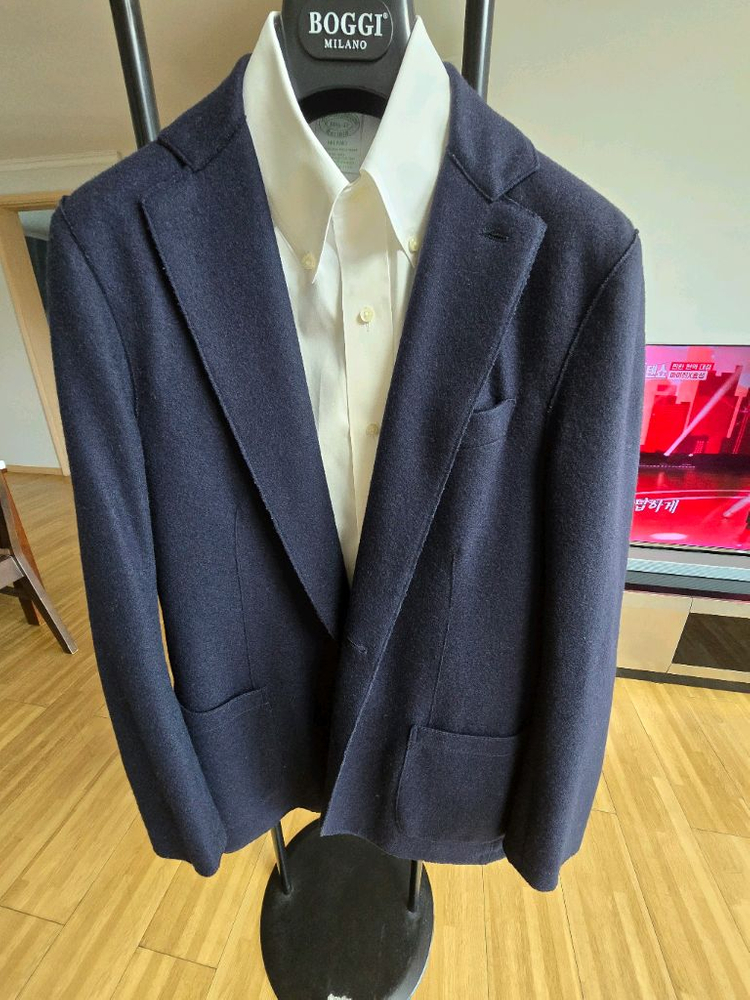 고급스러운 네이비 컬러의 캐시미어 블레이저예요. 클래식한 디자인과 고급스러운 소재감이 돋보이는 제품입니다. 상태 양호하고 착용감도 좋아요!