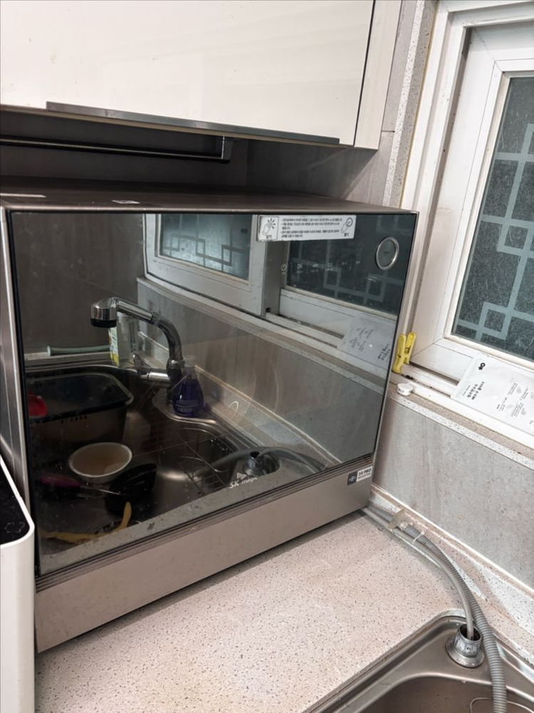 sk매직 식기세척기 dwa19rop00bl 6인용 4월 말 이사예정이라 4월중순이후 가져가실분이면 좋겠어요 내부가 깨끗하고 랙도 잘 갖춰져 있어서 상태 양호합니다. 주방에서 바로 사용 가능한 제품이에요. 설치 기사님 따로 부르셔야해요
