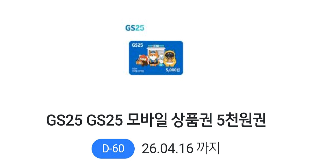 개인정보(거래정보)를 주고받는 행위는 사기에 노출될 수 있으므로 즉시 중고나라로 신고해 주세요편의점에서 사용 가능한 5천원 모바일 상품권이에요. 유효기간이 있으니 확인하시고 구매해주세요!