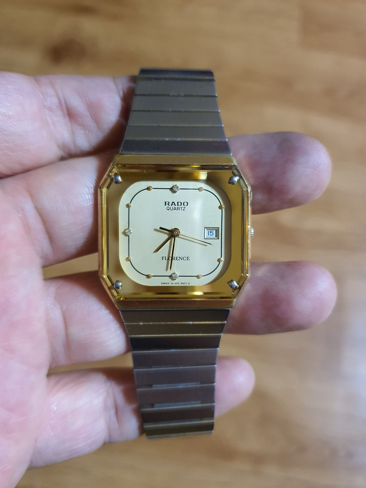 빈티지 스위스 라도 플로렌스 금장 쿼츠시계입니다 외관은 사진상으로 확인하시구요 메탈 특성상 줄쪽에 기스 있습니다 3.2×3.2 사이즈 이구요 남성용으로 나온 시계입니다 사이즈가 크지않아 남녀공용으로 착용해도 괜찮을듯 합니다 배터리 교체했구요 정상작동합니다 시계단품이며 일반시계케이스에 넣어서 보내드립니다 대구 직거래 환영 중고 특성상 제품하자 외 변심 등으로 인한 교환ㆍ환불 불가입니다