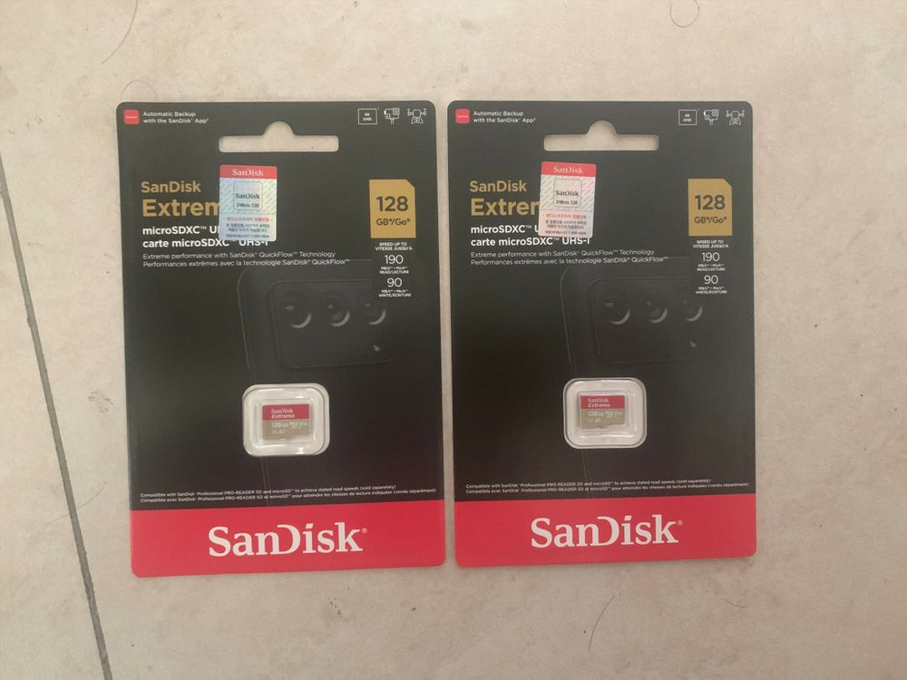 샌디스크 Extreme microSDXC 128GB 판매합니다. ✔ 정품 ✔ 미개봉 새상품 ✔ V30 / U3 / A2 등급 ✔ 4K 촬영 지원 ✔ 최대 읽기 190MB/s ✔ 닌텐도 스위치 / OLED / 액션캠 / 블랙박스 / 드론 사용 가능 인터넷 최저가 39,000~40,000원대 제품입니다. 합리적인 가격에 드립니다. 정품 고급형 라인이라 Ultra 제품보다 성능이 더 좋습니다. 직거래 / 택배거래 가능 안전결제 가능합니다. 문의 편하게 주세요 🙂
