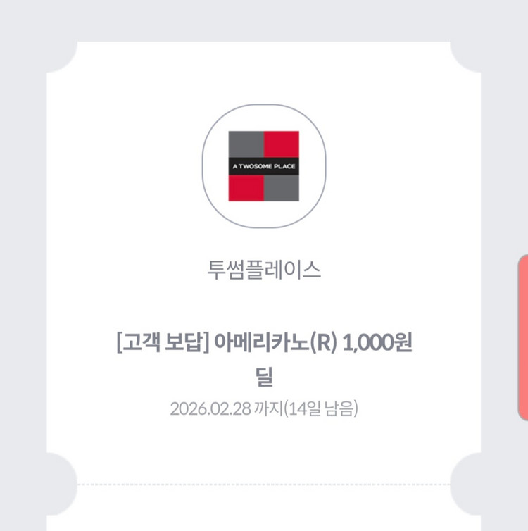 투썸 아메리카노(R) 1,000원 쿠폰