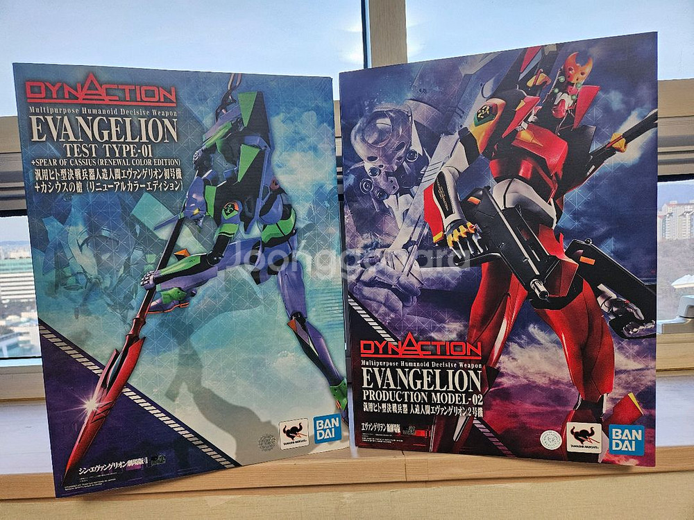 [반다이 다이넥션 에반게리온] 초호기 카시우스 창 버전, 2호기 일괄 판매합니다. * 미개봉 상품입니다. * 카시우스 버전에는 에바 비율에 맞는 신지 도색버전과 카시우스창이 들어있습니다. * 40cm 가까운 박력있는 크기!