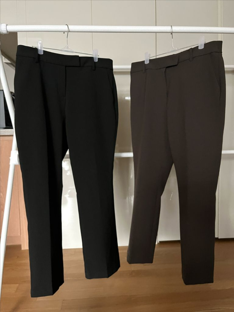 미착용 상품입니다. 사이즈 88이구요. 속기모 있는 톡톡한 두께이고 기본 핏이고 총장 92cm에요. 허리 뒷밴딩과 스판끼 있어 편하고 앞쪽은 지퍼와 버클 있어요. 블랙과 브라운 컬러 2종이며 개별 가격입니다. ✔️네고, 환불 불가 ✔️택배 거래시 배송비 별도 ✔️계좌이체만 가능