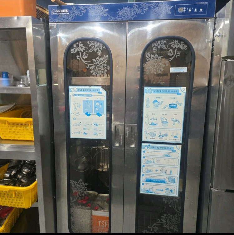 스테인리스 스틸 재질로 위생적이며, UV 살균 기능으로 도마,식기류 등을 깨끗하게 소독할 수 있습니다 전원 및 설정 버튼 모두 정상 작동하며, 사용감은 있지만 전반적으로 양호한 상태입니다 급식소등 대형업소에서 꼭 필요한,사용하기 좋은 제품입니다.