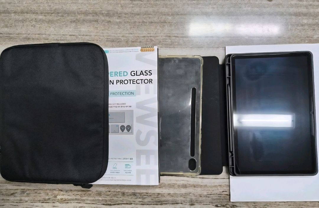 갤럭시탭 S9 그래파이트 256gb (A급) 모두 정상 작동합니다. 필름붙히고 새제품 필름 제거안해서 그대로 부착되어 있습니다. 아이가 잠깐 집에서만 사용해서 새것처럼 상태 좋습니다. 소프트웨어 최신업데이트해서 6.1.1 입니다 초기화 해서 드립니다. 구성품: - 탈부착식 개인사생활보호 프라이버시 필름 - 강화유리 필름 - 태블릿 파우치 - 덮개.스탠드 케이스 - 젤 범퍼 케이스